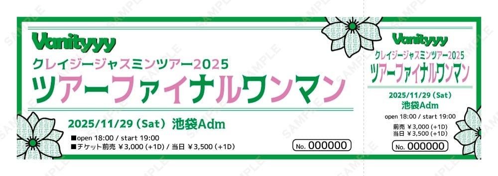 11/29(土)池袋Admで開催されるクレイジージャスミンツアーファイナルワンマンのチケットです。