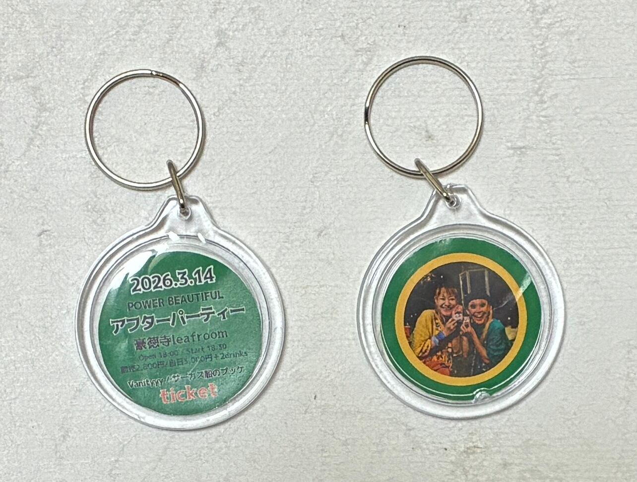 20th full album「POWER BEAUTIFUL」リリースパーティー翌日に行われるアフターパーティーのチケットキーホルダーです。